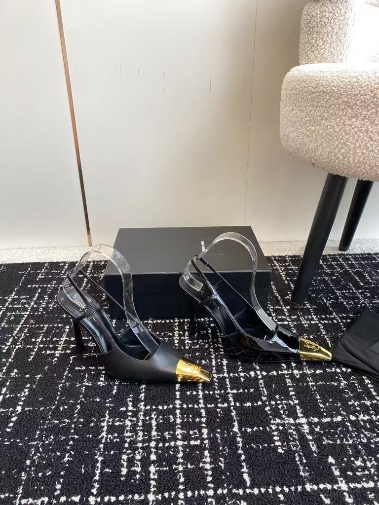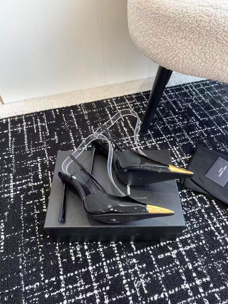 New Yves Saint Laurent women’s fashionable and versatile comfortable genuine leather metal head elegant atmosphere comfortable casual high heels