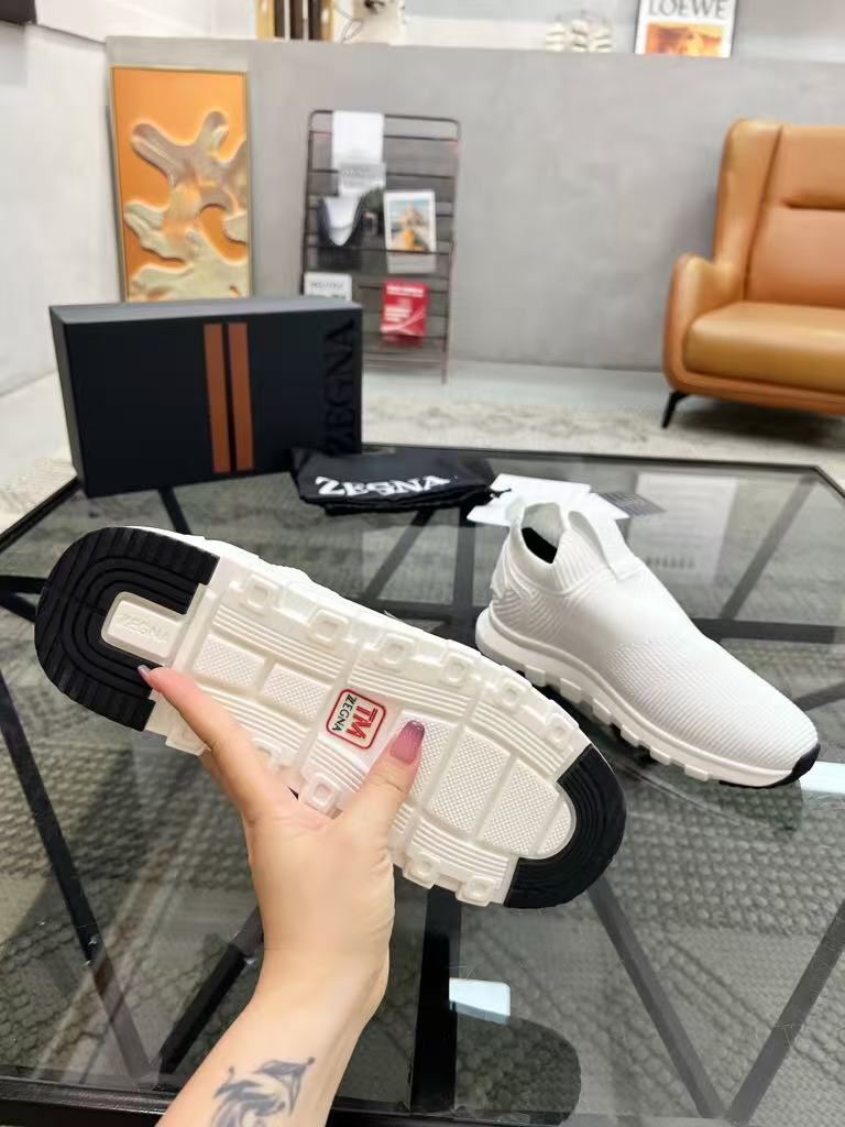 New Zegna men’s versatile comfortable and breathable genuine leather flying woven fabric fashionable casual shoes