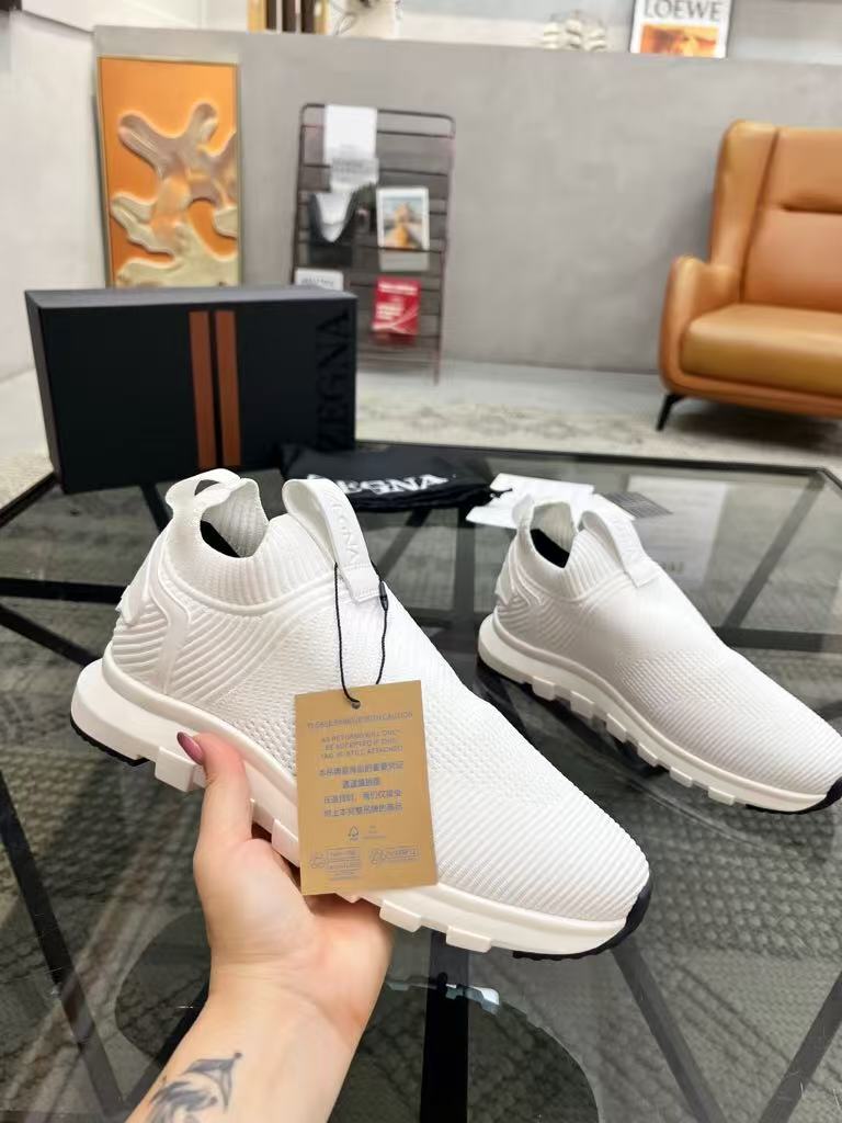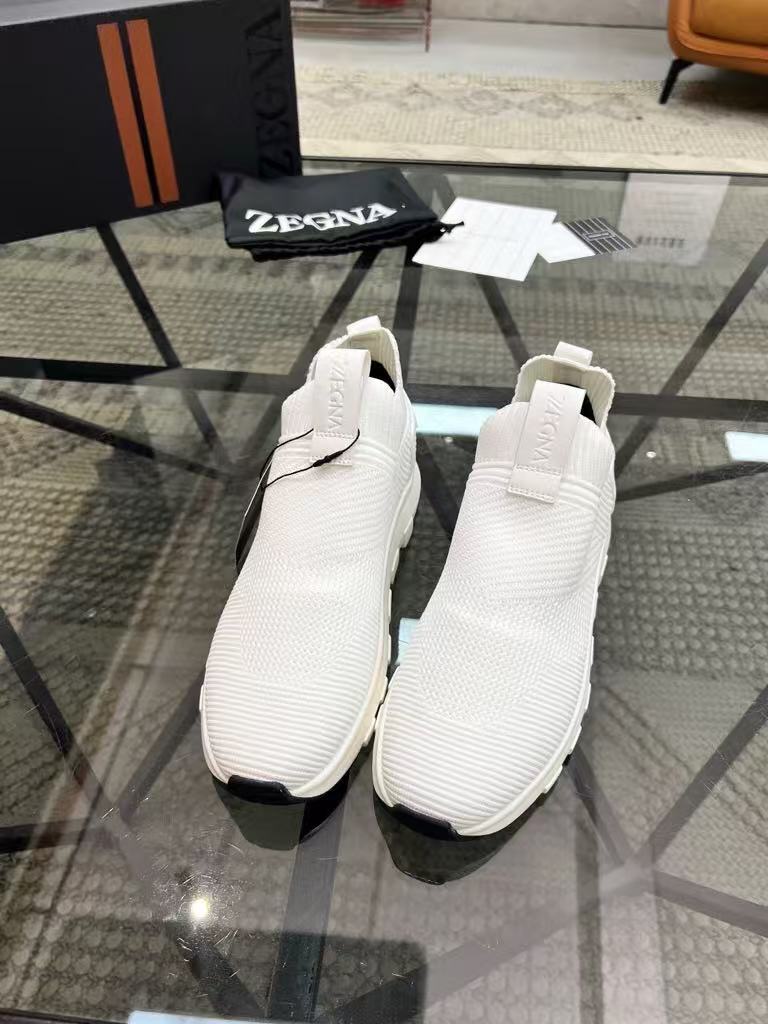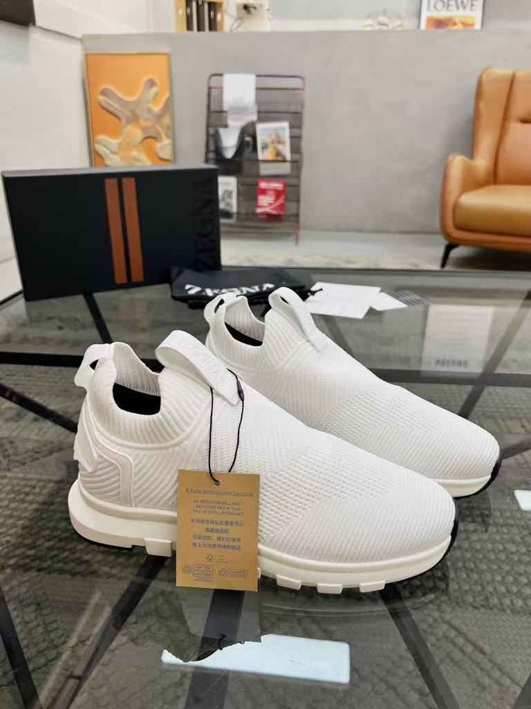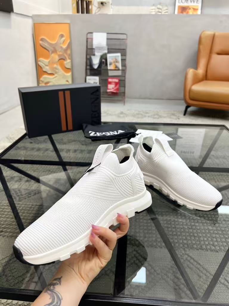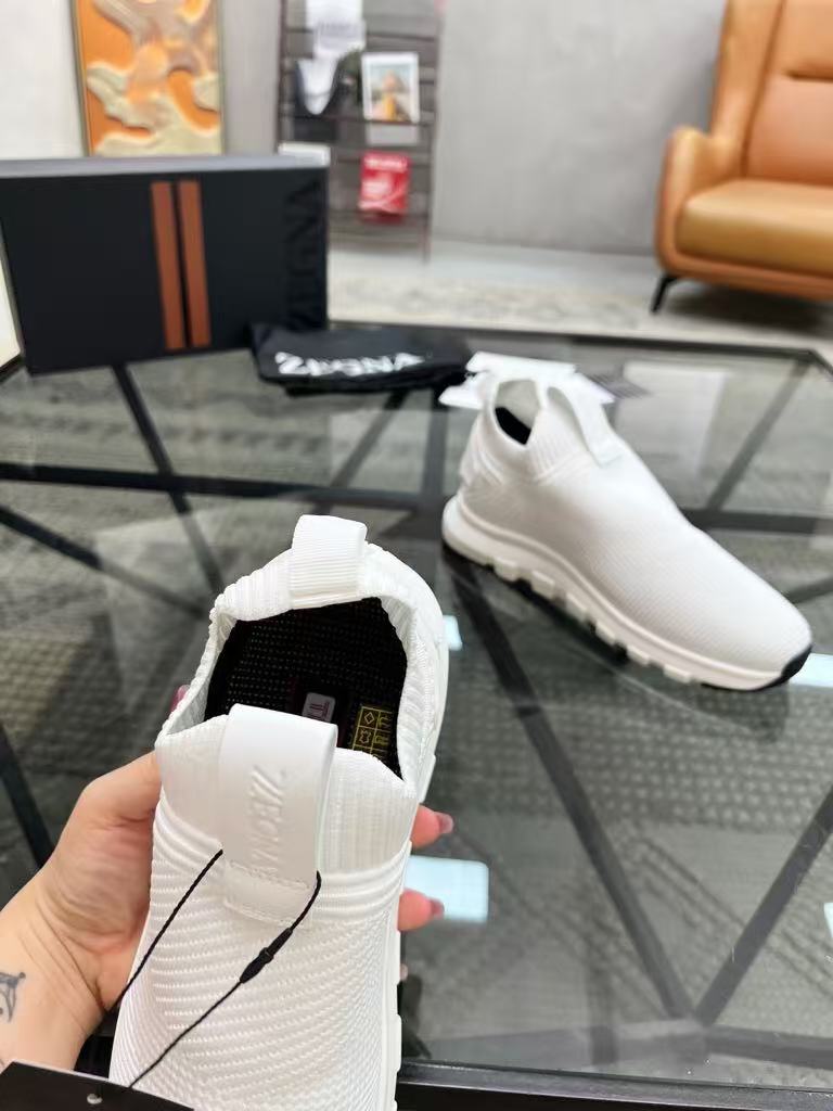 New Zegna men’s versatile comfortable and breathable genuine leather flying woven fabric fashionable casual shoes