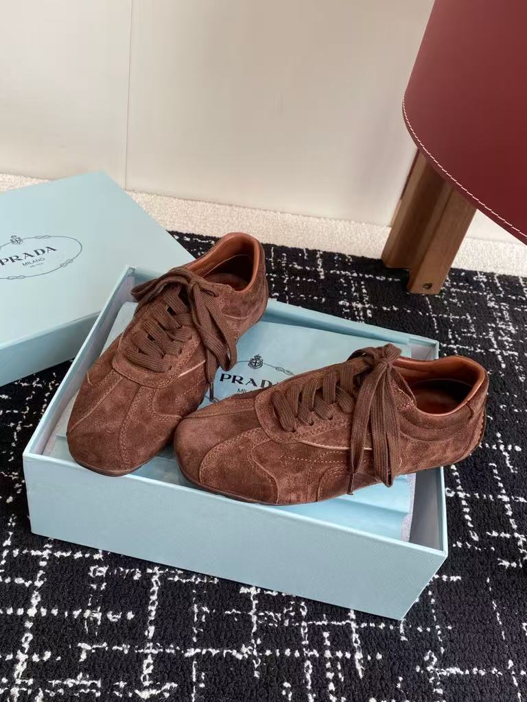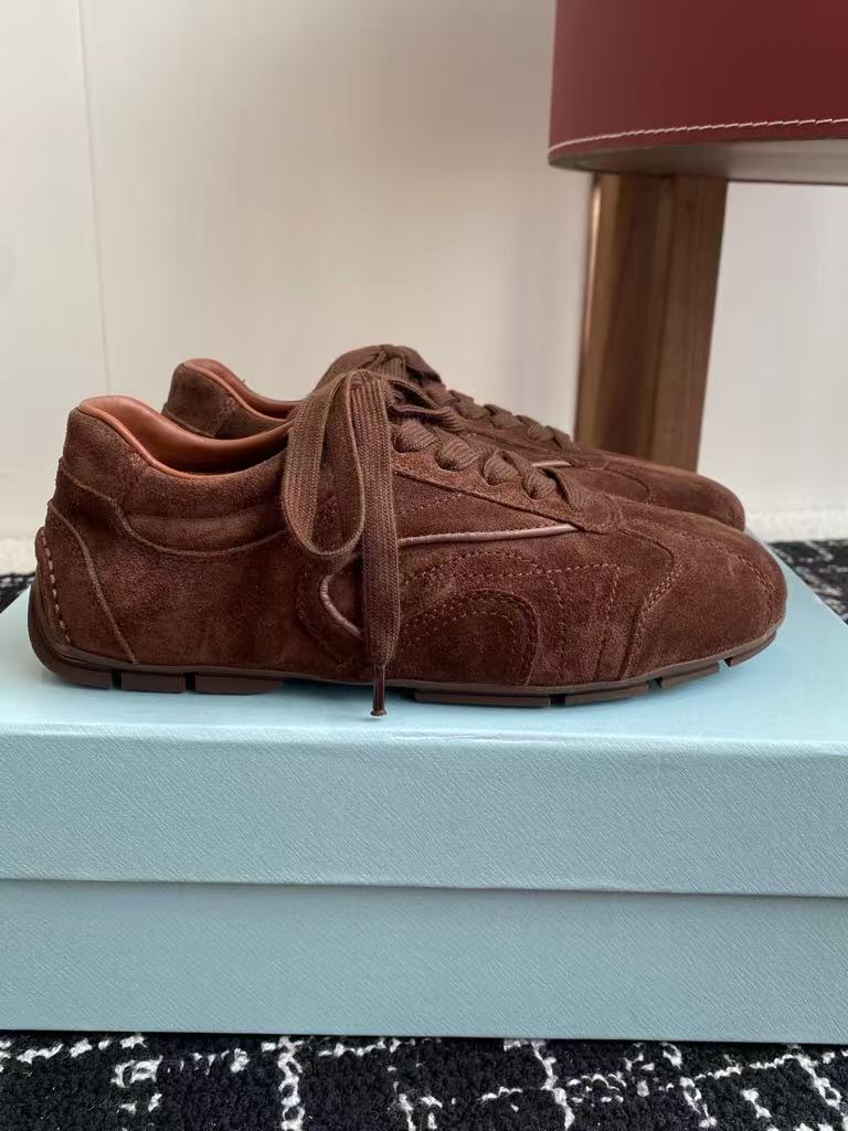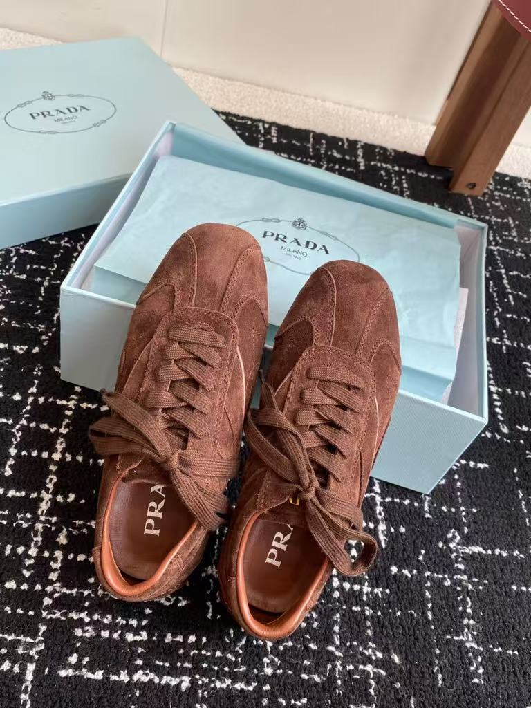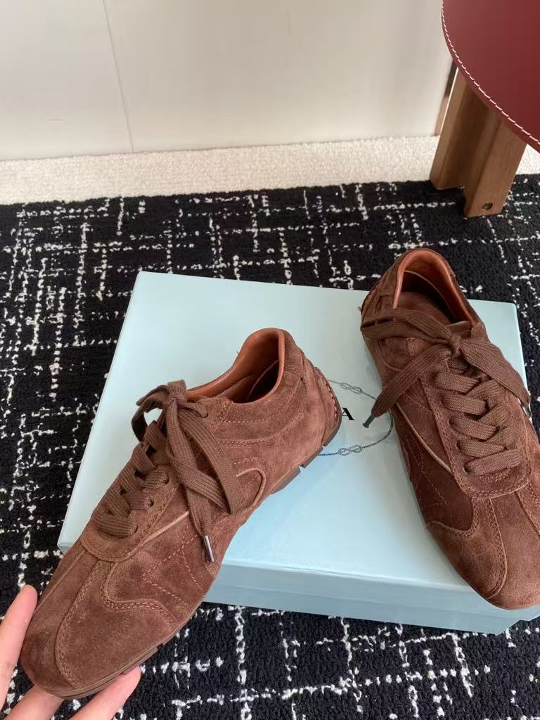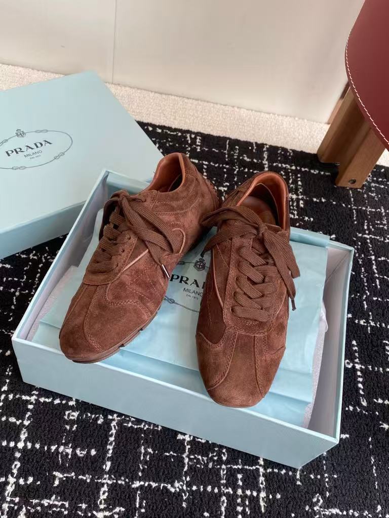 Prada’s new men’s and women’s popular fashion versatile comfortable suede casual sports shoes