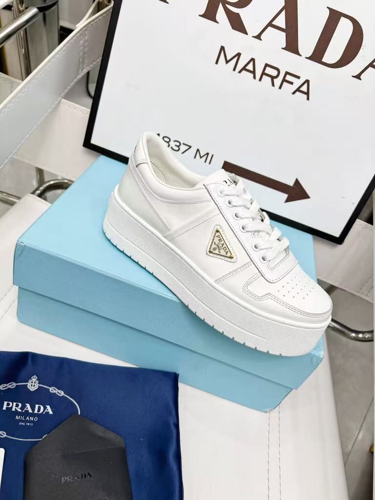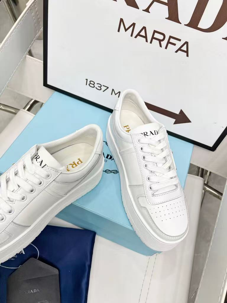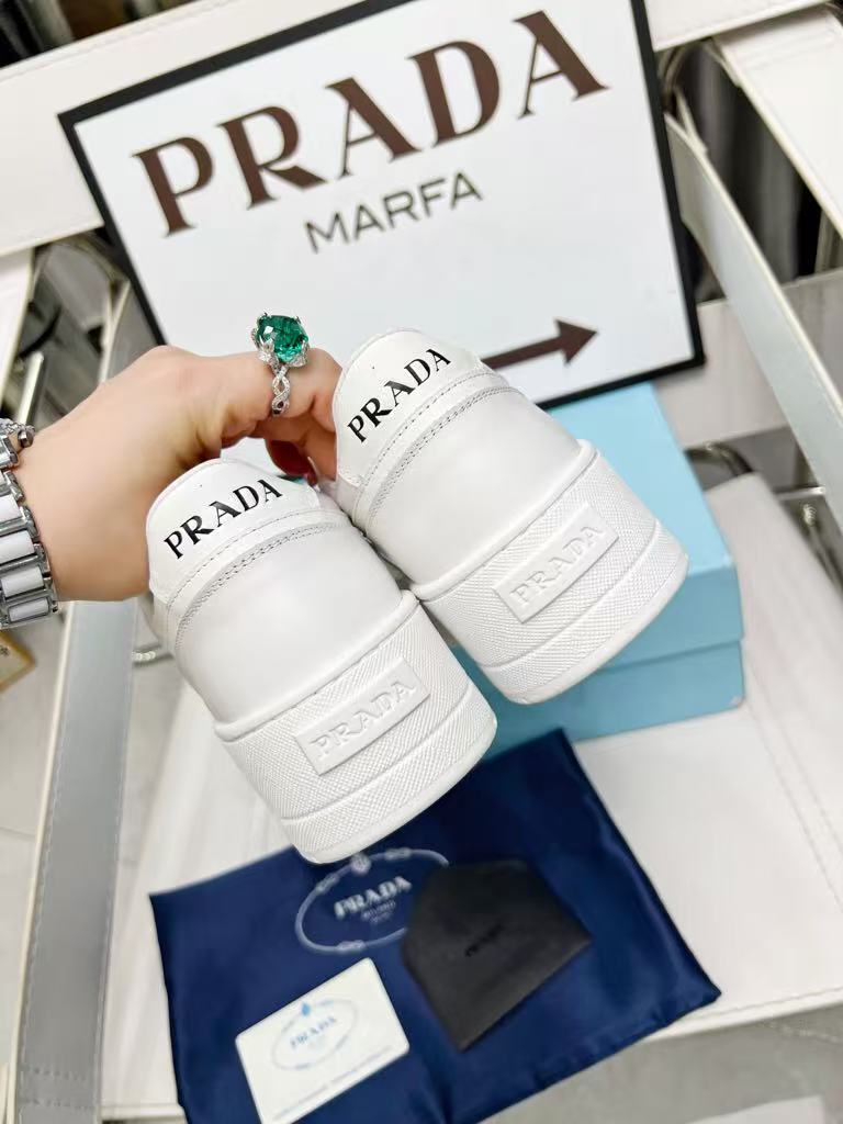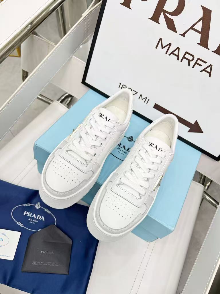 Prada’s new women’s fashion comfortable versatile genuine leather triangle metal micro logo casual white shoes