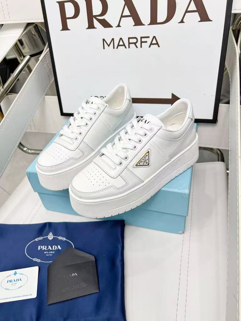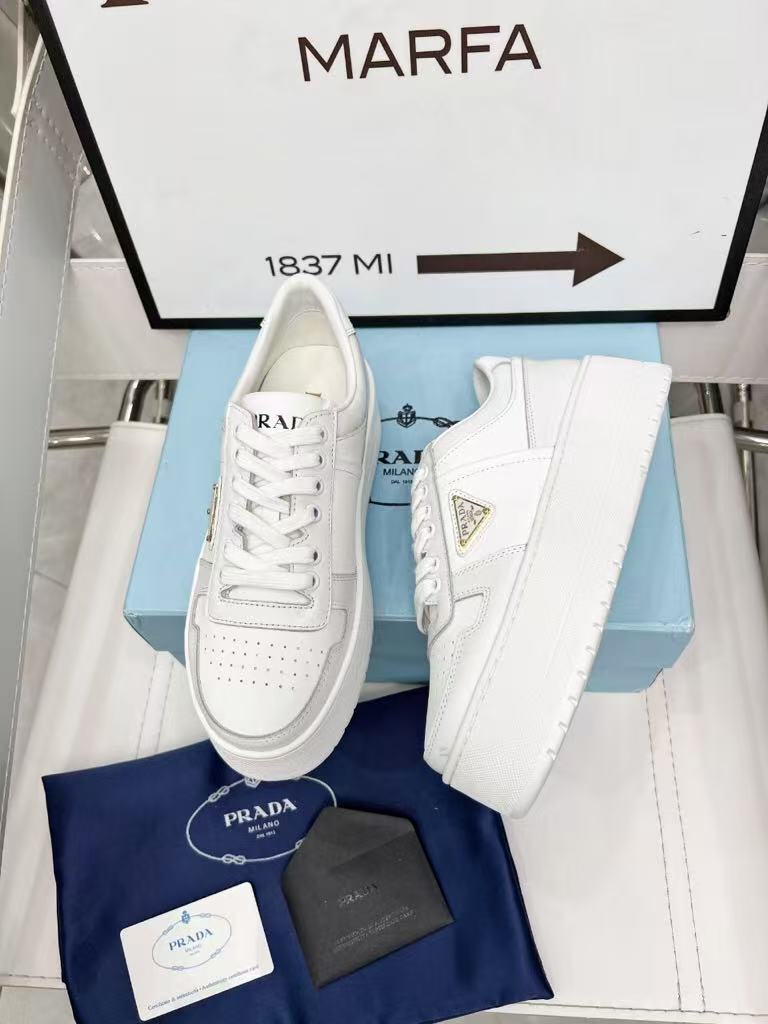 25 reviews for Prada’s new women’s fashion comfortable versatile genuine leather triangle metal micro logo casual white shoes
