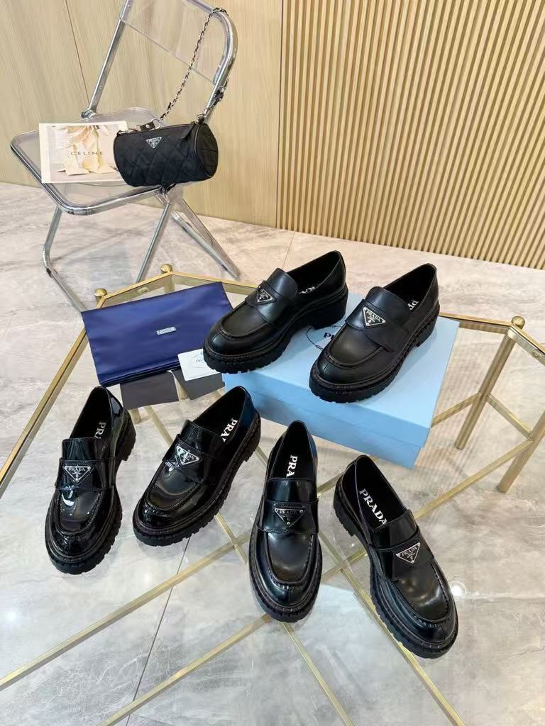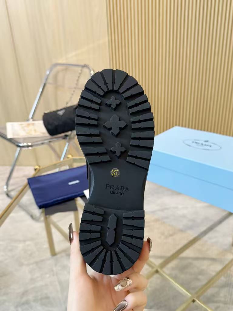 25 reviews for Prada’s new women’s trendy, comfortable and versatile genuine leather triangle silver buckle double-soled casual shoes