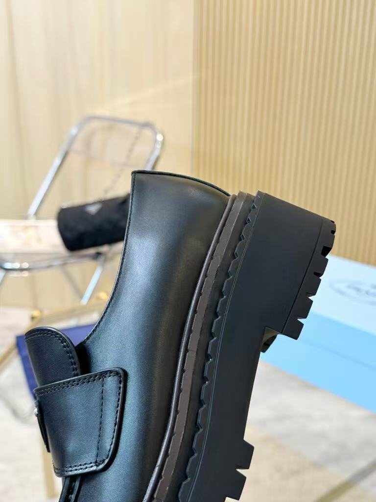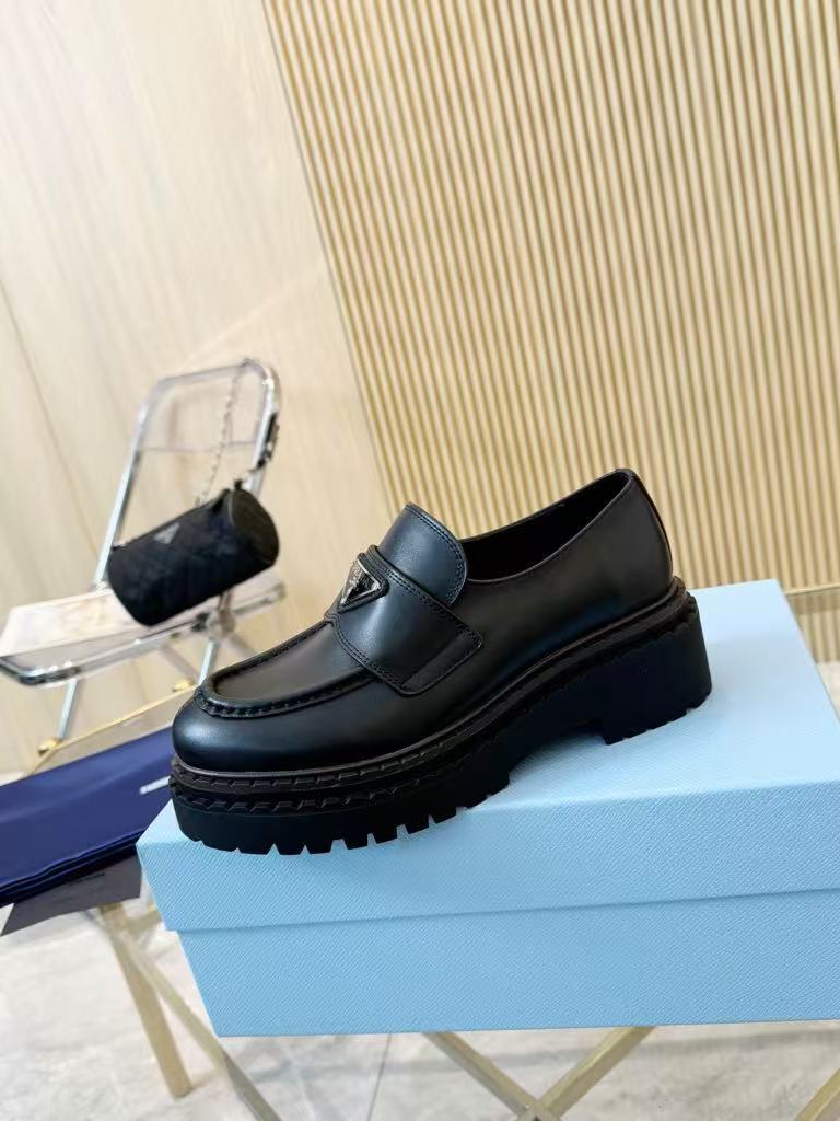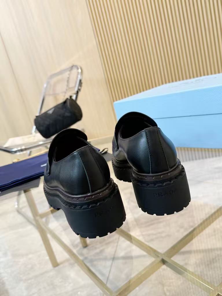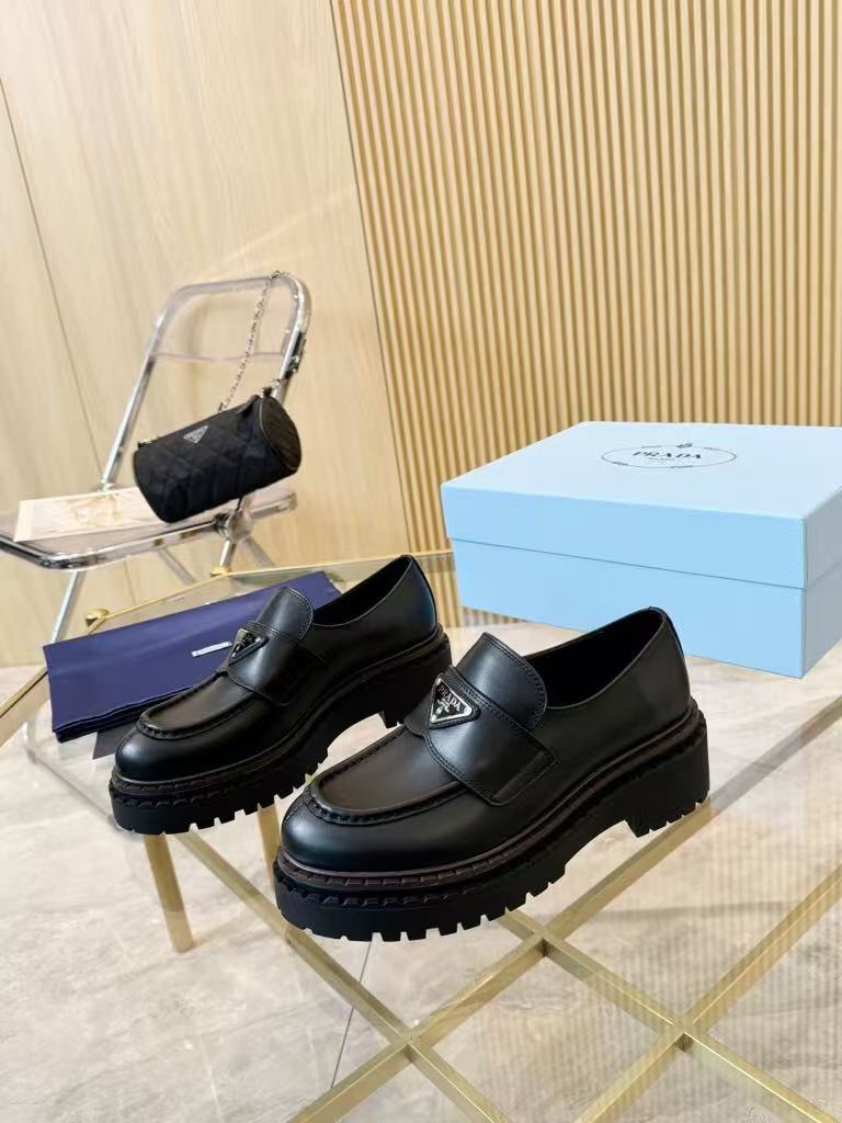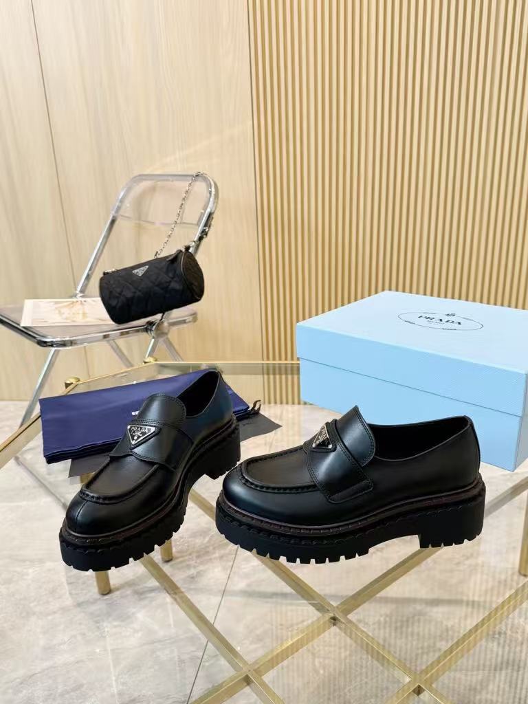 Prada’s new women’s trendy, comfortable and versatile genuine leather triangle silver buckle double-soled casual shoes
