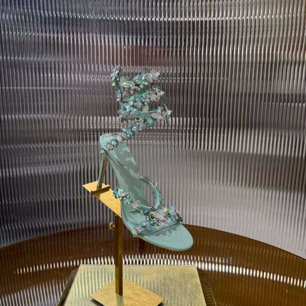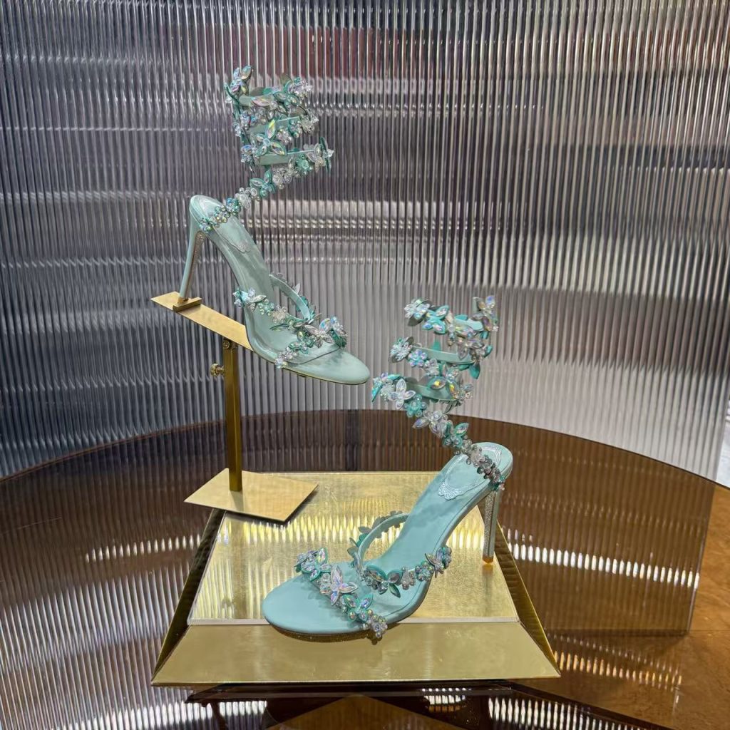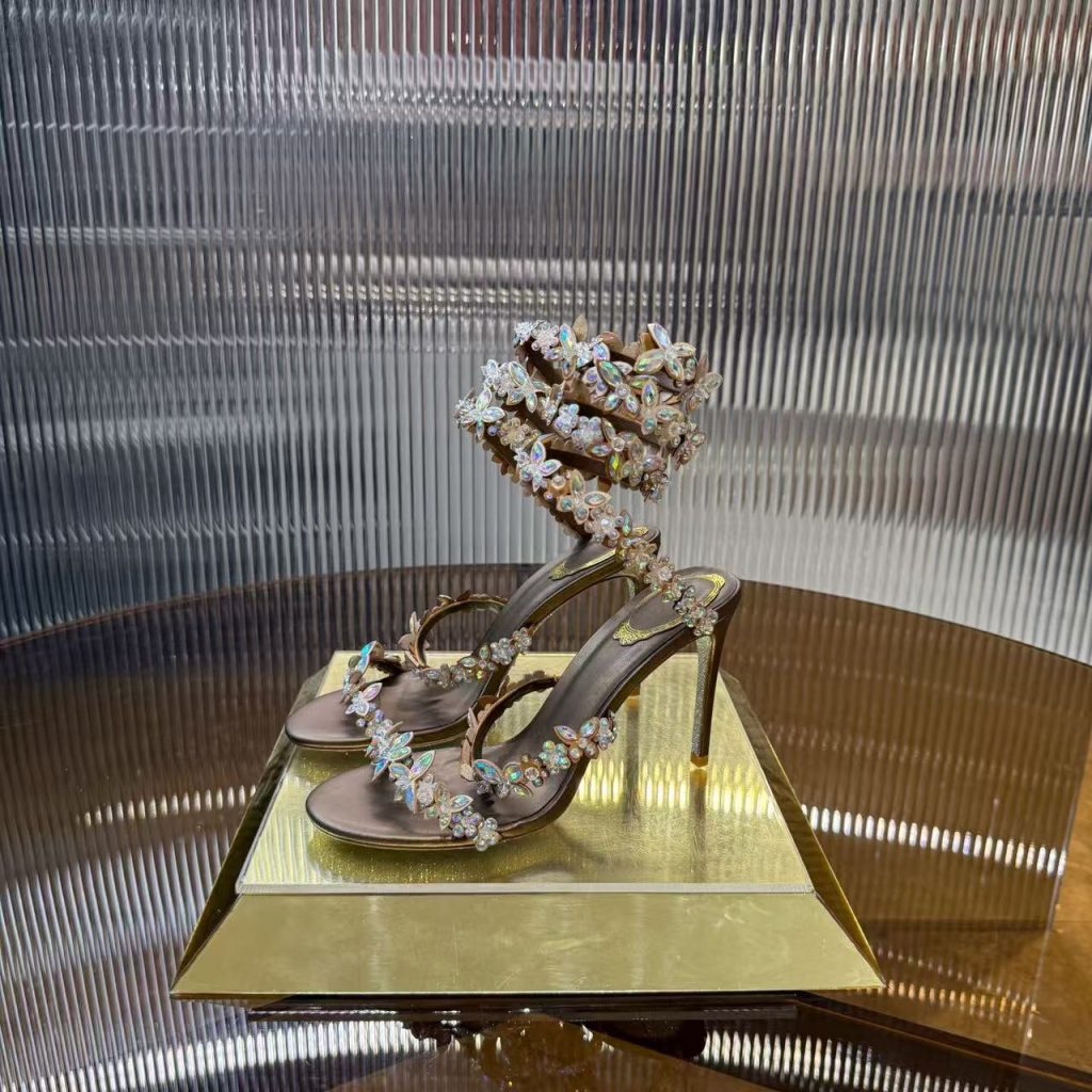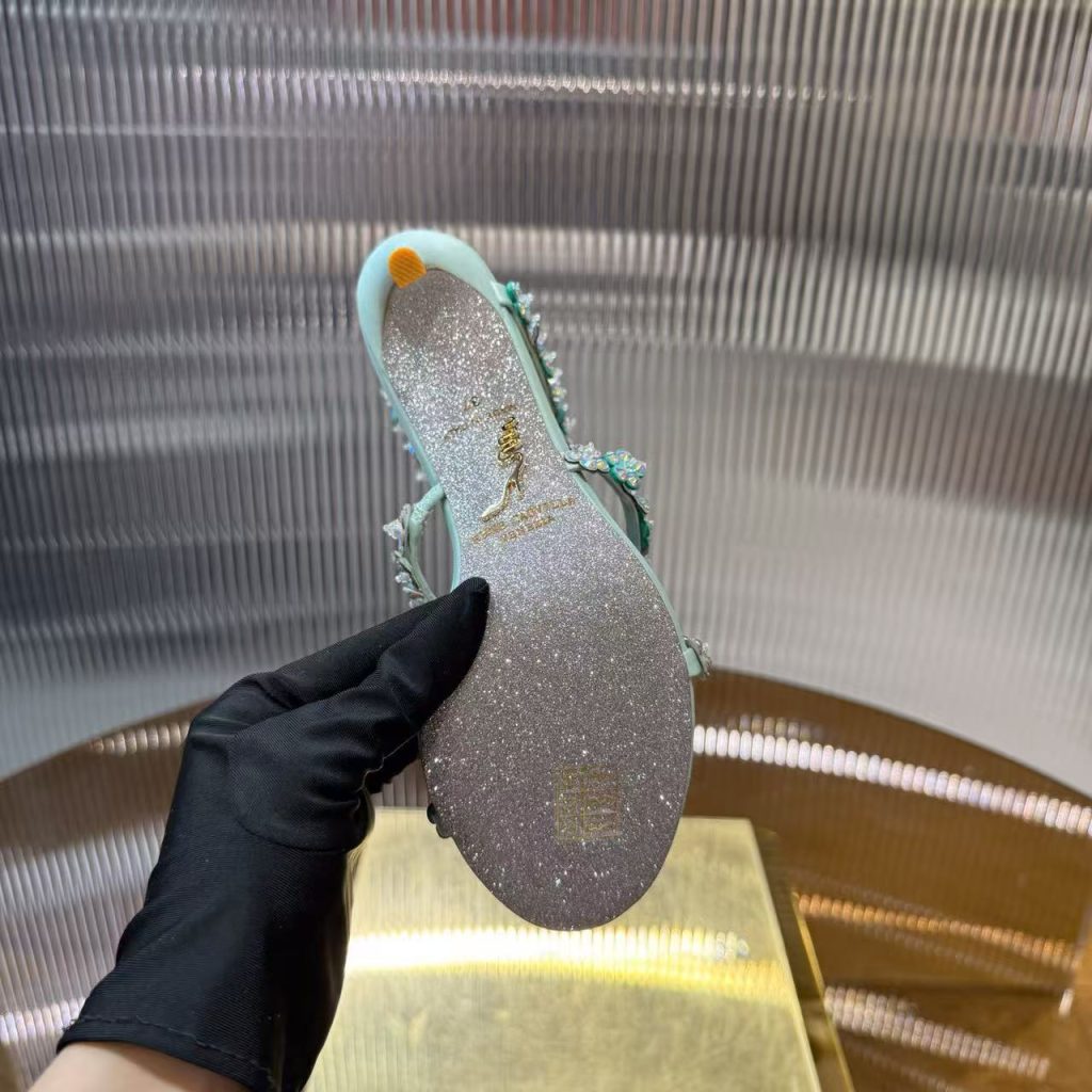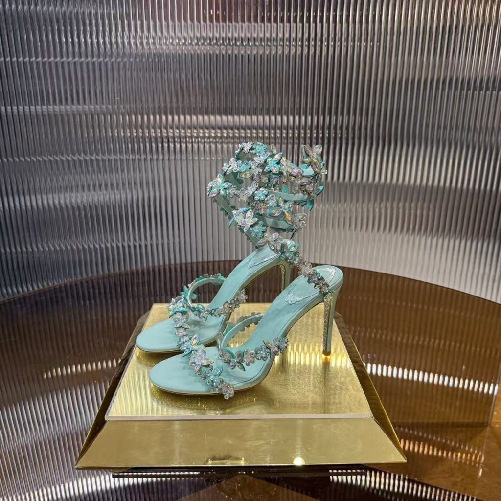 ReneCaoviia Women’s Butterfly Flower Rhinestone Satin Mid-Heel Chunky Heel Sandals Slippers