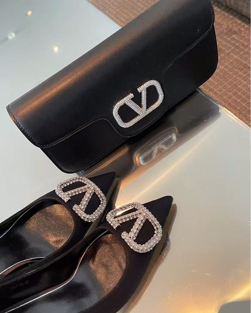 Valentino new women’s trendy and fashionable all-match genuine leather diamond casual high heels