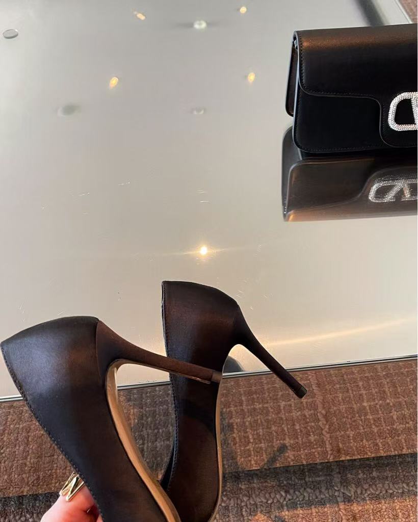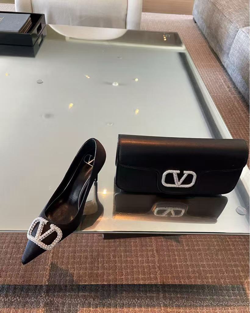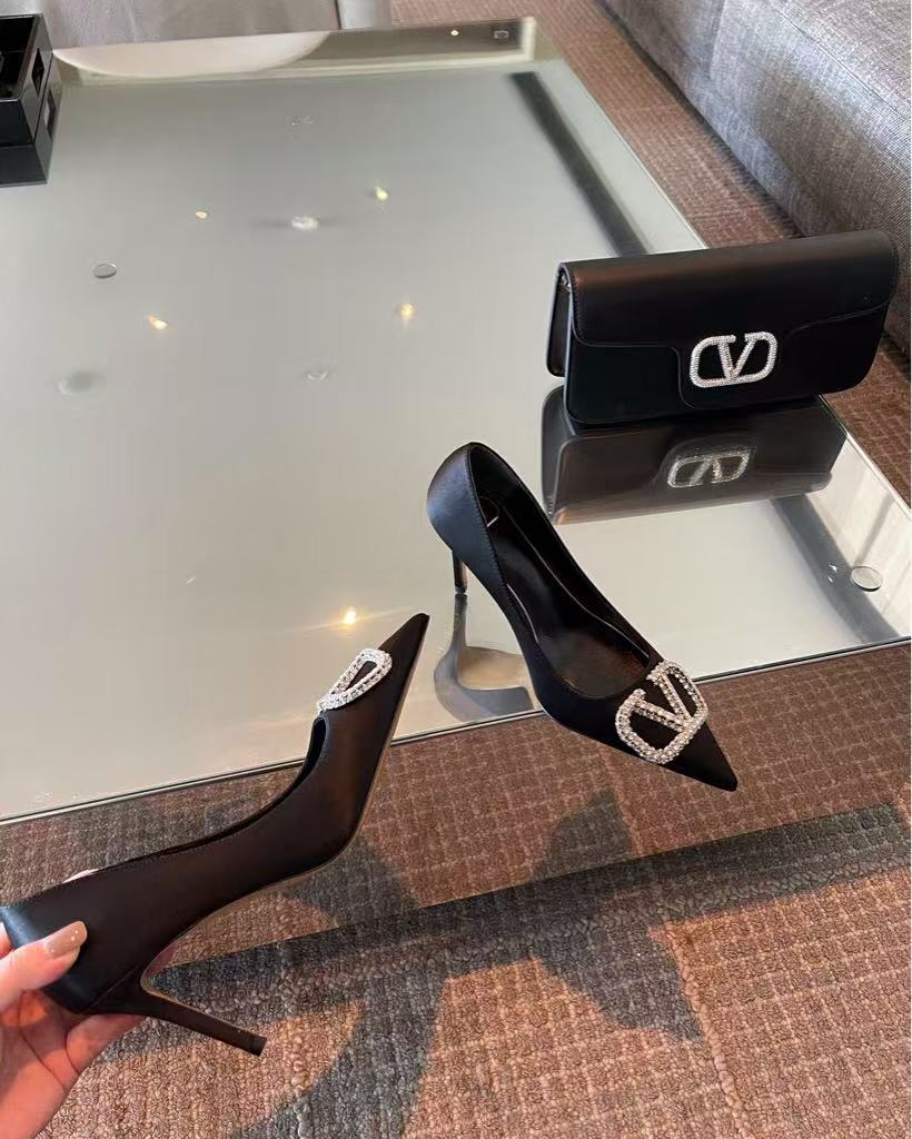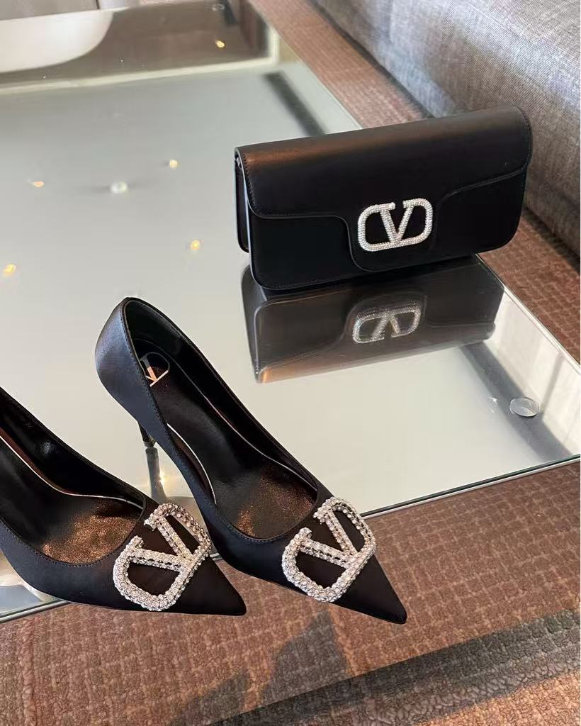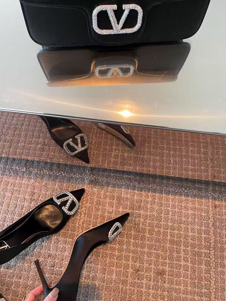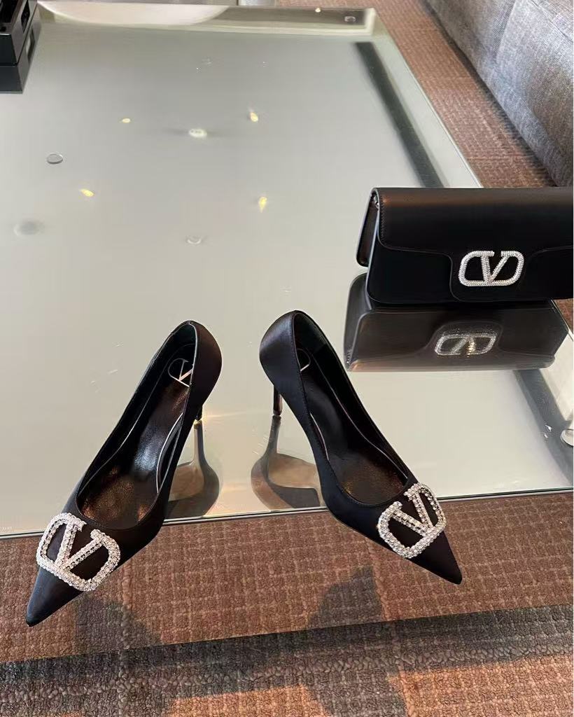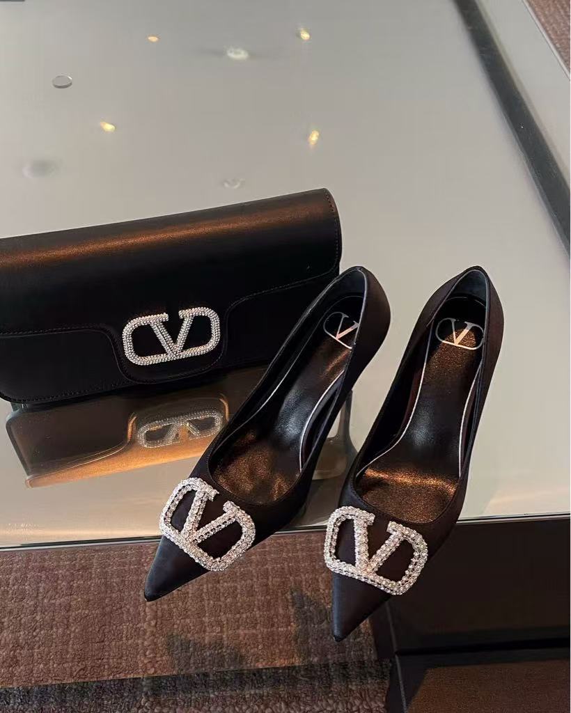Valentino new women’s trendy and fashionable all-match genuine leather diamond casual high heels