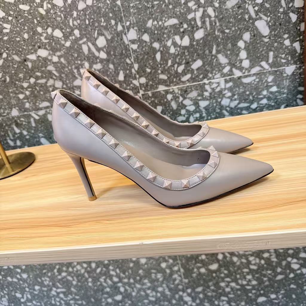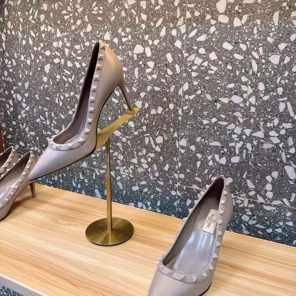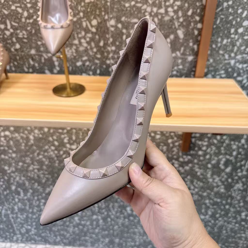 Valentino’s new ladies’ fashionable and versatile exquisite and elegant genuine leather trendy hardware set off casual high heels