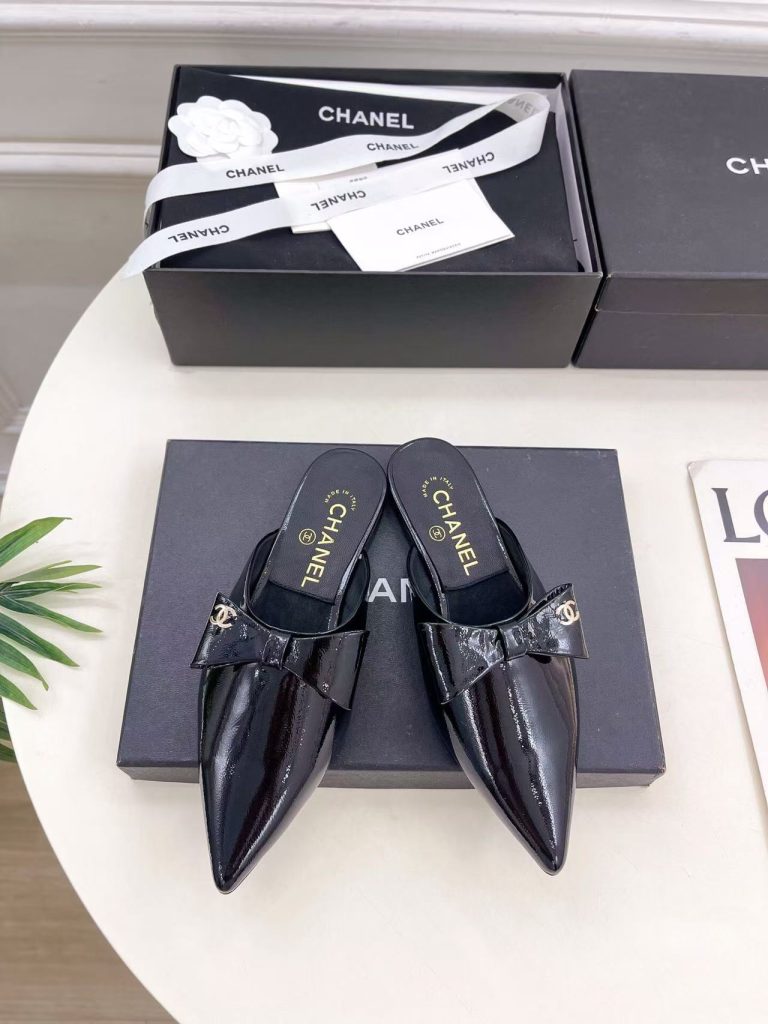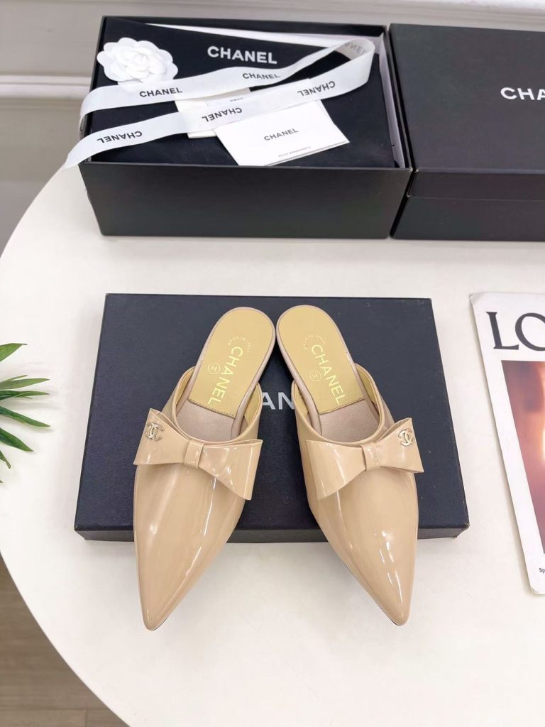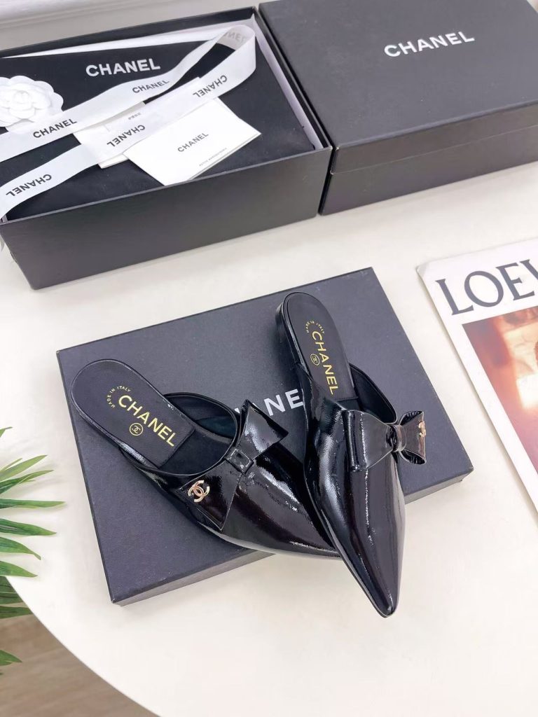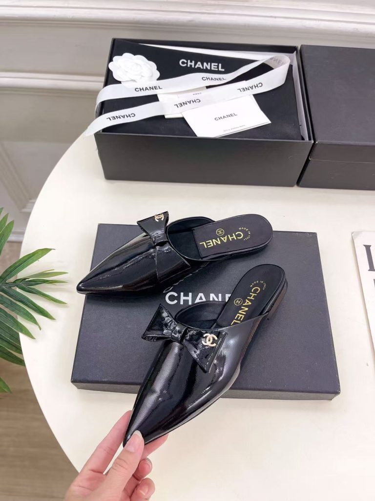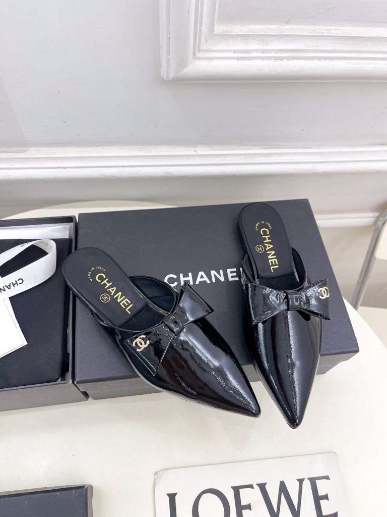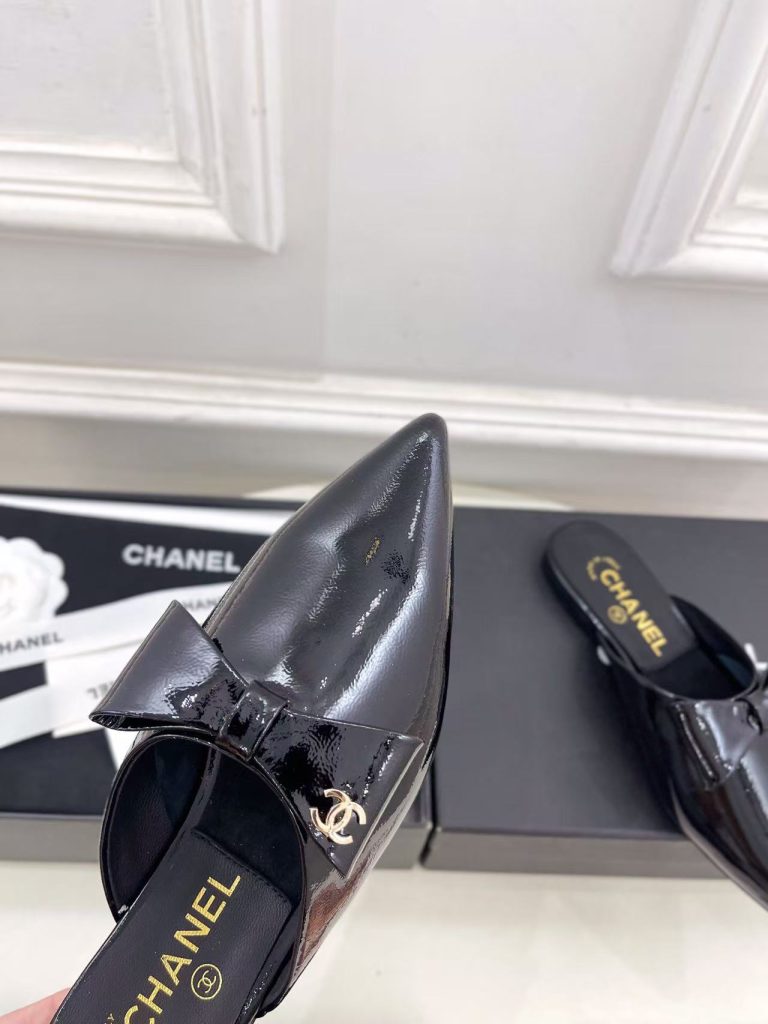 Yves Saint Laurent’s new fashion Chanel pointed bow genuine leather versatile casual half-slippers