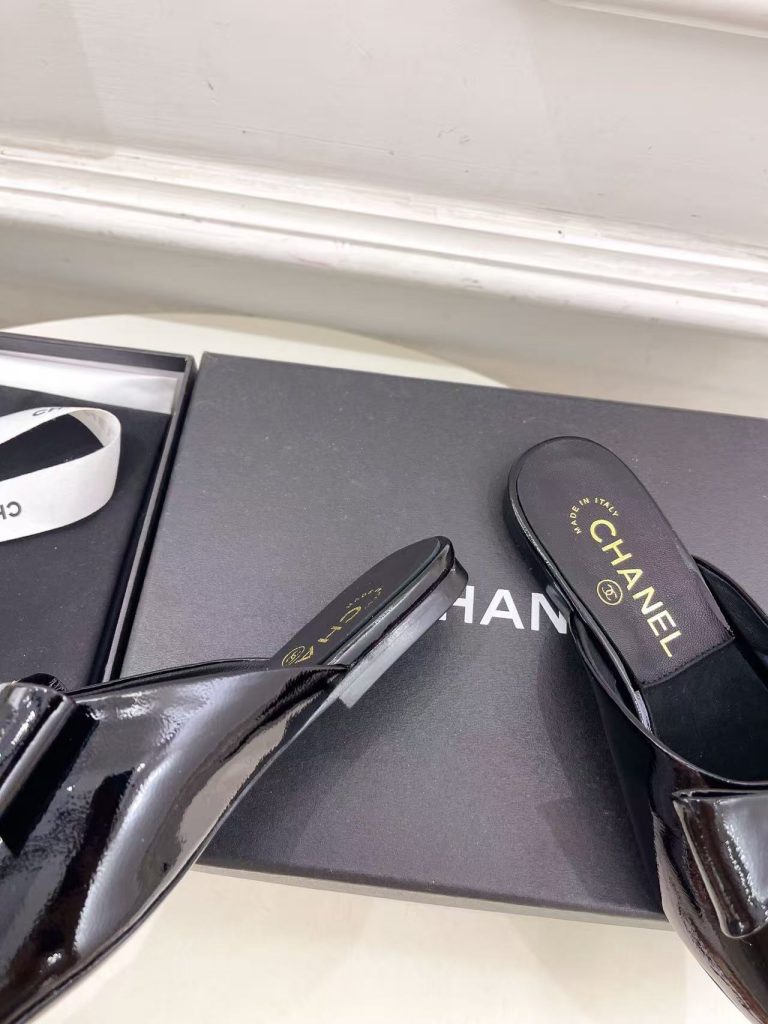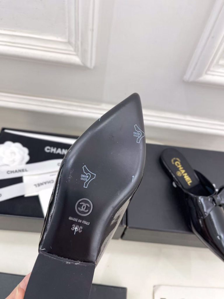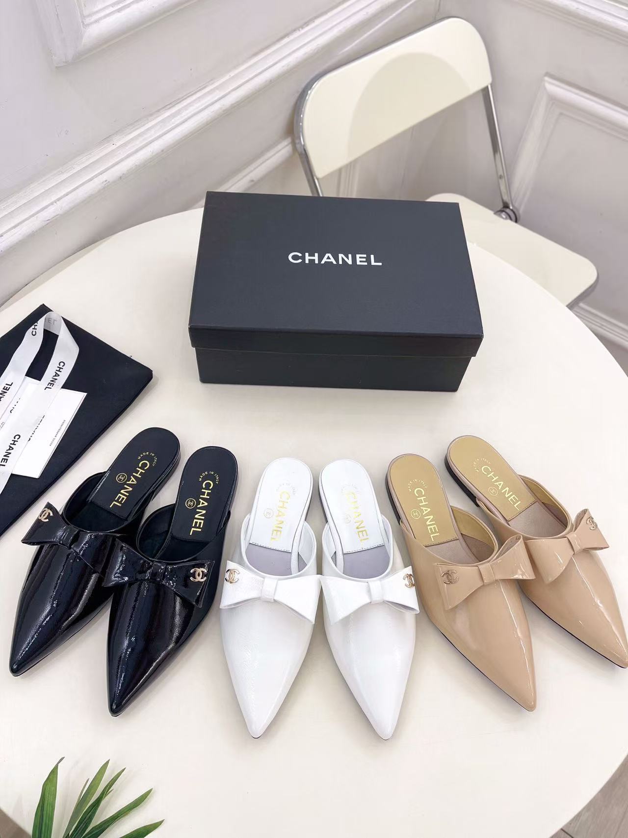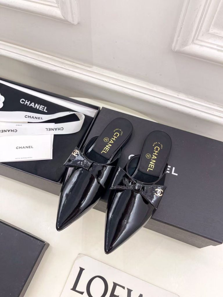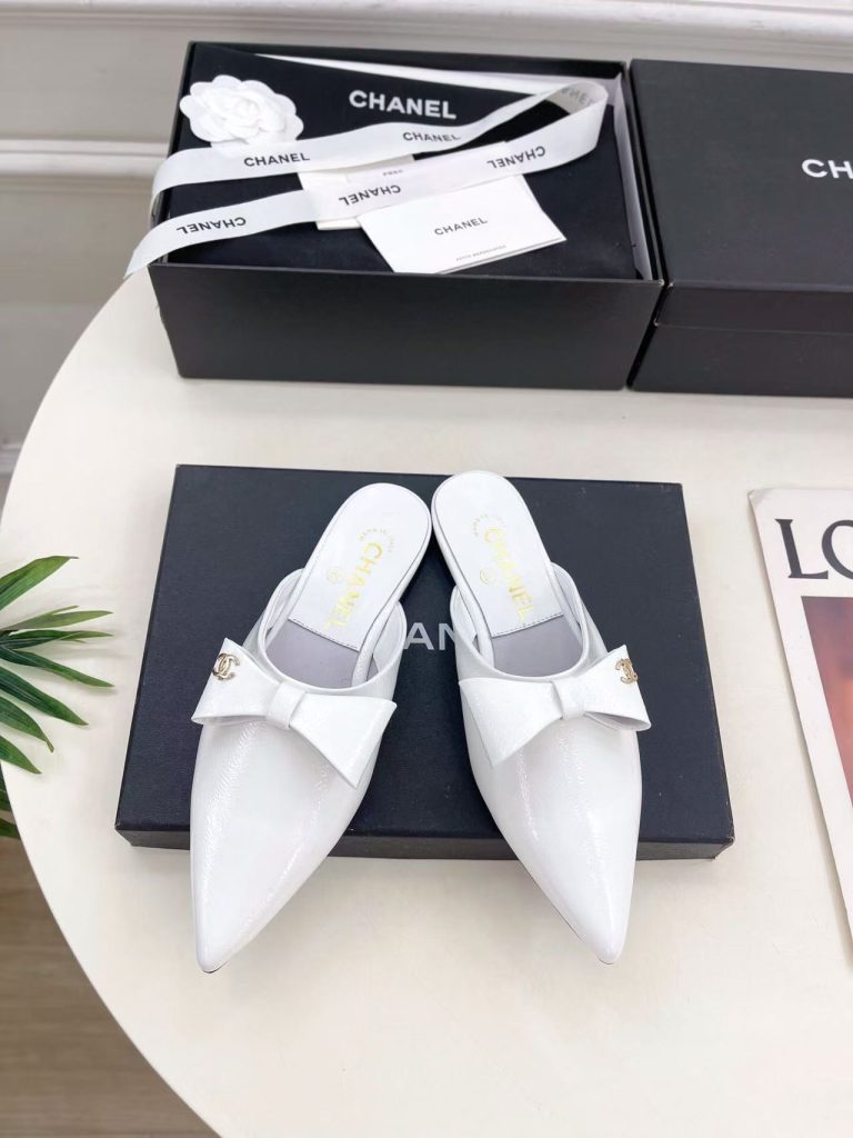 Yves Saint Laurent’s new fashion Chanel pointed bow genuine leather versatile casual half-slippers